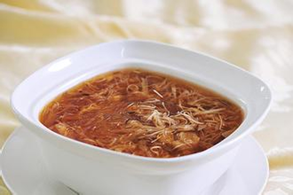 ③将葱洗净后切成小段,与姜片一并放入药汤中,滴入几滴橄榄油,待水开后,再放入猪肝片,用武火略煮片刻,调入精盐、料酒即可食用;